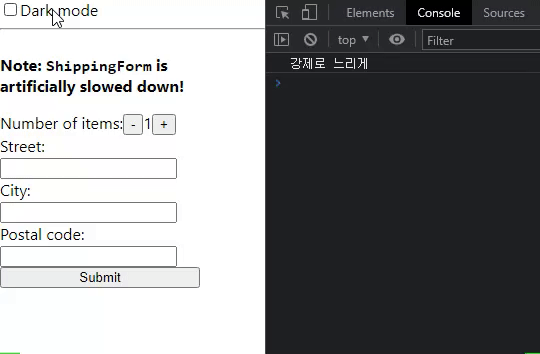 Note: <code>ShippingForm</code> is artificially slowed down!